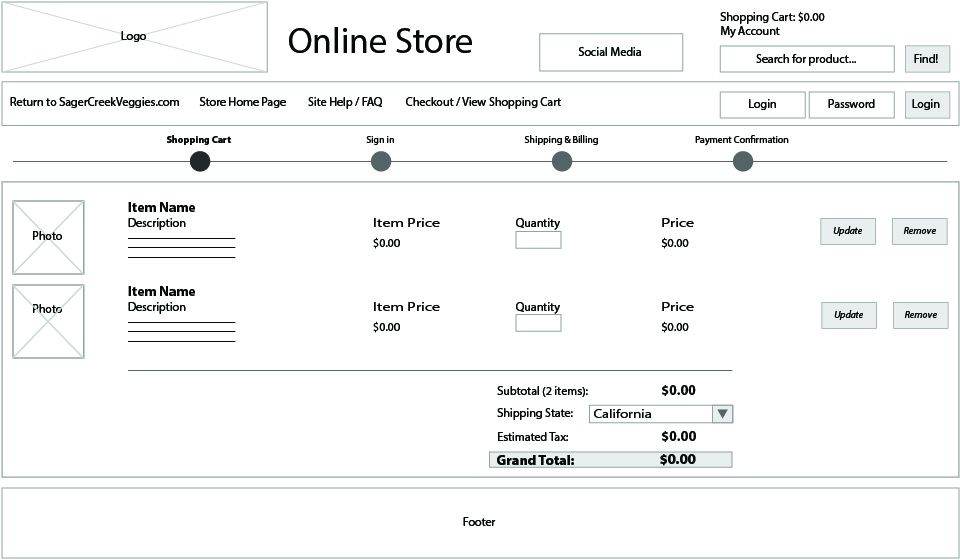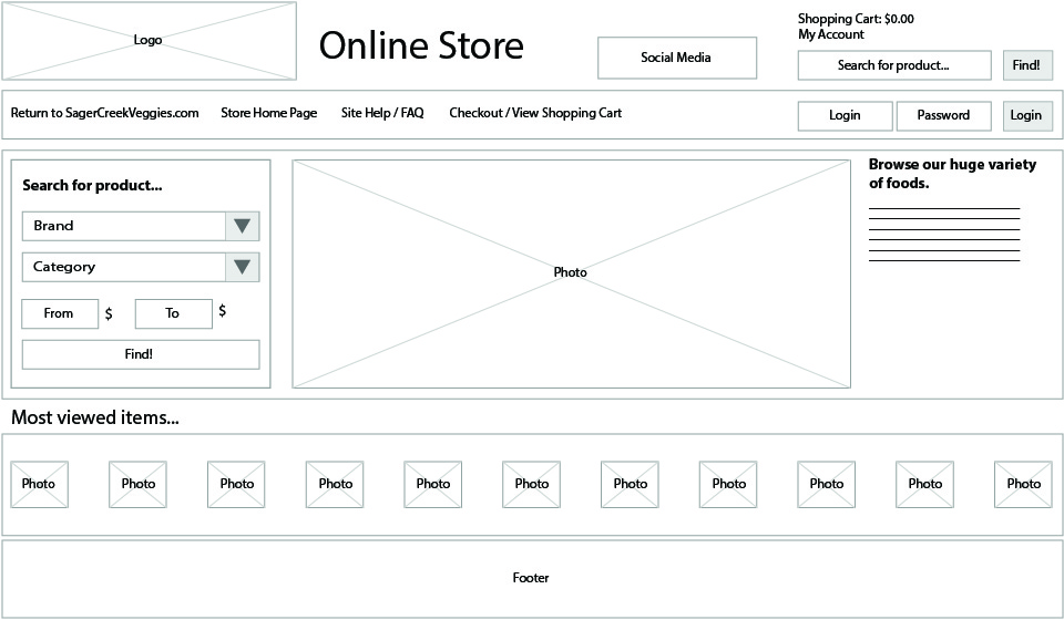 To begin the wireframes for the redesign I reviewed the store layout as it applied to